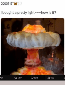 今回問題視されているのは、2022年、エスパのメンバーであるニンニンが、ファン向けアプリに「きのこ雲」を連想させるランプの写真を投稿していたことがあるからです。