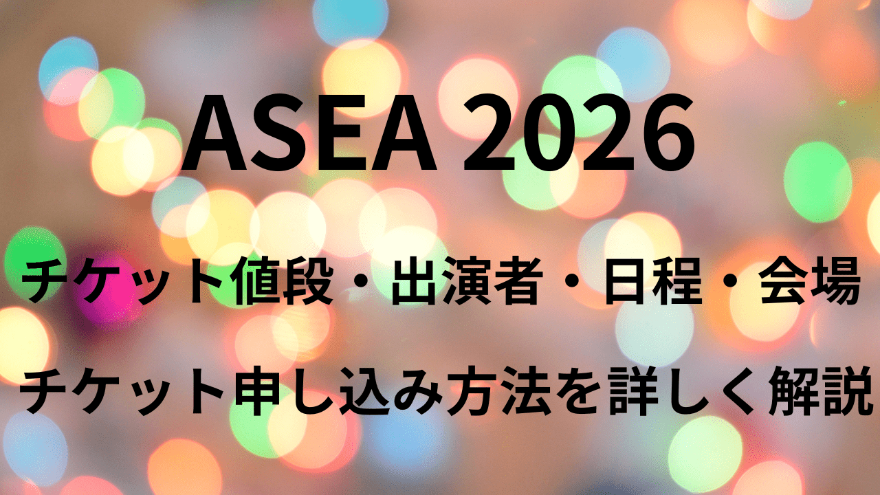 この記事では、ASEA 2026の開催日、会場、出演者、チケット受付期間、値段を分かりやすく整理してまとめます。