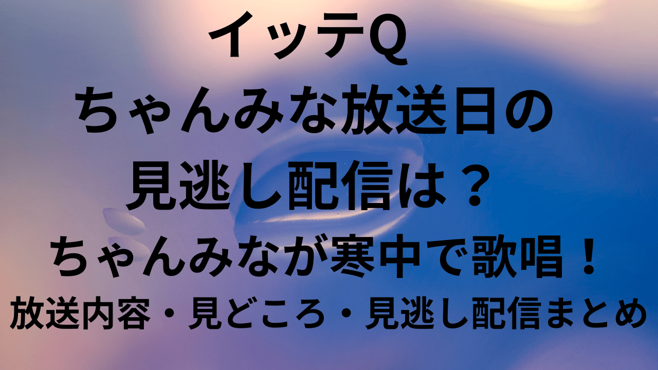 2026年2月15日放送の「世界の果てまでイッテQ!」は、ちゃんみなが極寒のフィンランドで寒中体験に挑戦する、放送前から注目回となりました。