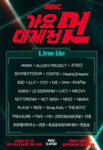年末の風物詩、2025年版「MBC歌謡大祭典(MBC 가요대제전)」が今年も開催されます。
