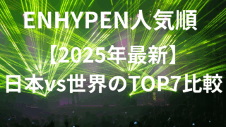 ENHYPEN ENHYPEN人気順【2025年最新】日本vs世界のTOP7比較 ENHYPENは、2020年のオーディション番組「ILAND」から誕生した、K-POPの7人組ボーイズグループです。日本や韓国だけでなく世界でも人気のあるENHYPENですが、「ENHYPENのメンバーで誰が一番人気なの?」「日本と世界で人... 2025.03.23 ENHYPEN