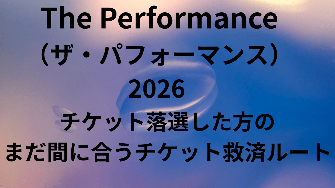 The Performance(ザ・パフォーマンス) 2026 チケット落選した方のまだ間に合うチケット救済ルート